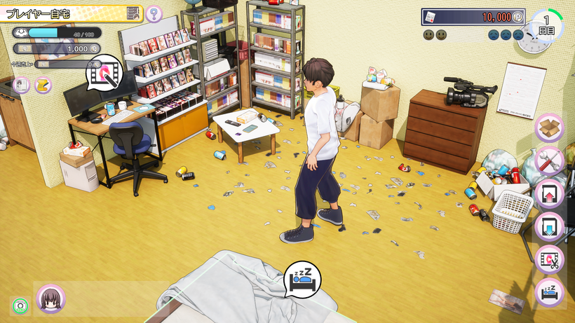| Kinh Doanh Studio & Marketing | – Budget system: revenue from sales, marketing spend (trailer, billboard, social media) – Expansion: upgrade studio (light rig, green screen), hire crew (camera man, editor) – Market dynamic: trend (BDSM hot), competitor spy, review system – Side business: merch (doll, poster), fan meet |